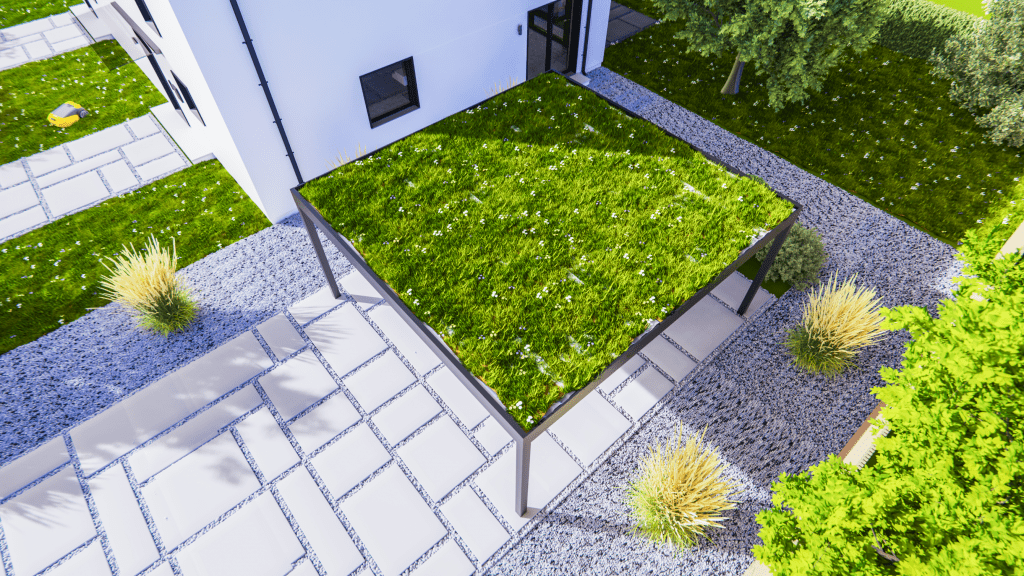 Ohne Weiteres kann das Flachdach Flat Line begrünt werden, was eine Reihe an Vorzügen hat und in vielen Regionen Deutschlands ist es sogar gesetzlich vorgeschrieben. Eine Begrünung kann sogar helfen, einen Teil der Niederschlagswassergebühr zu sparen. Die Begrünung schützt das Flachdach vor extremen Witterungsbedingungen während Sommer und Winter, hilft bei der Filterung von Luftschadstoffen und Feinstaub.