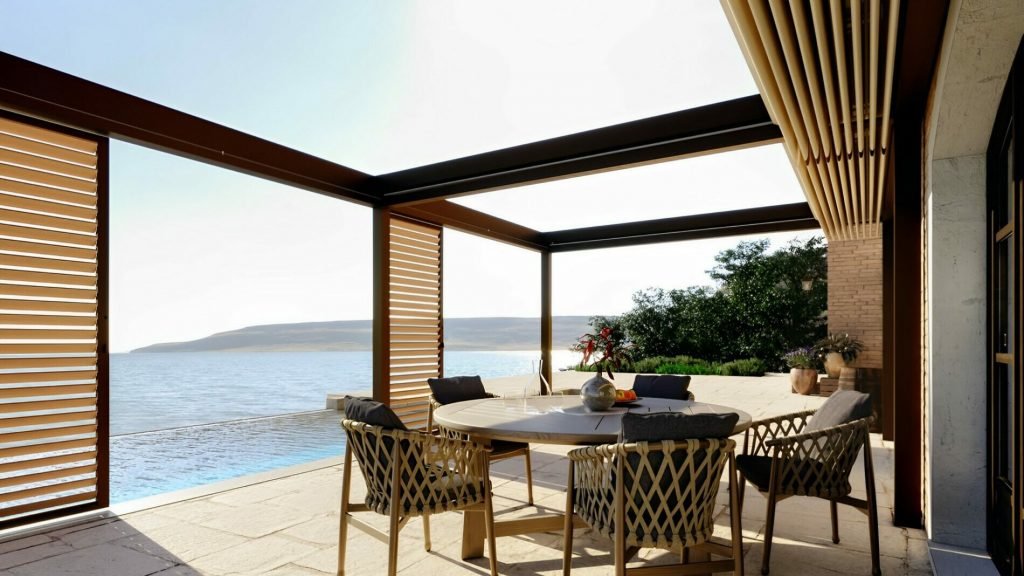Eine solide Bauweise, eine flache Form und ein minimalistisch-modernes Design sind die charakteristischen Merkmale des Faltdach openAir. Die Überdachung vereint Ästhetik und Funktionalität sowie Wetterbeständigkeit und Nutzkomfort, unabhängig davon, ob die Sonne strahlt oder starker Regen fällt. Es gibt zwei Varianten der Überdachung – freistehend und wandmontiert -, die alle Bedürfnisse der Raumgestaltung erfüllen.