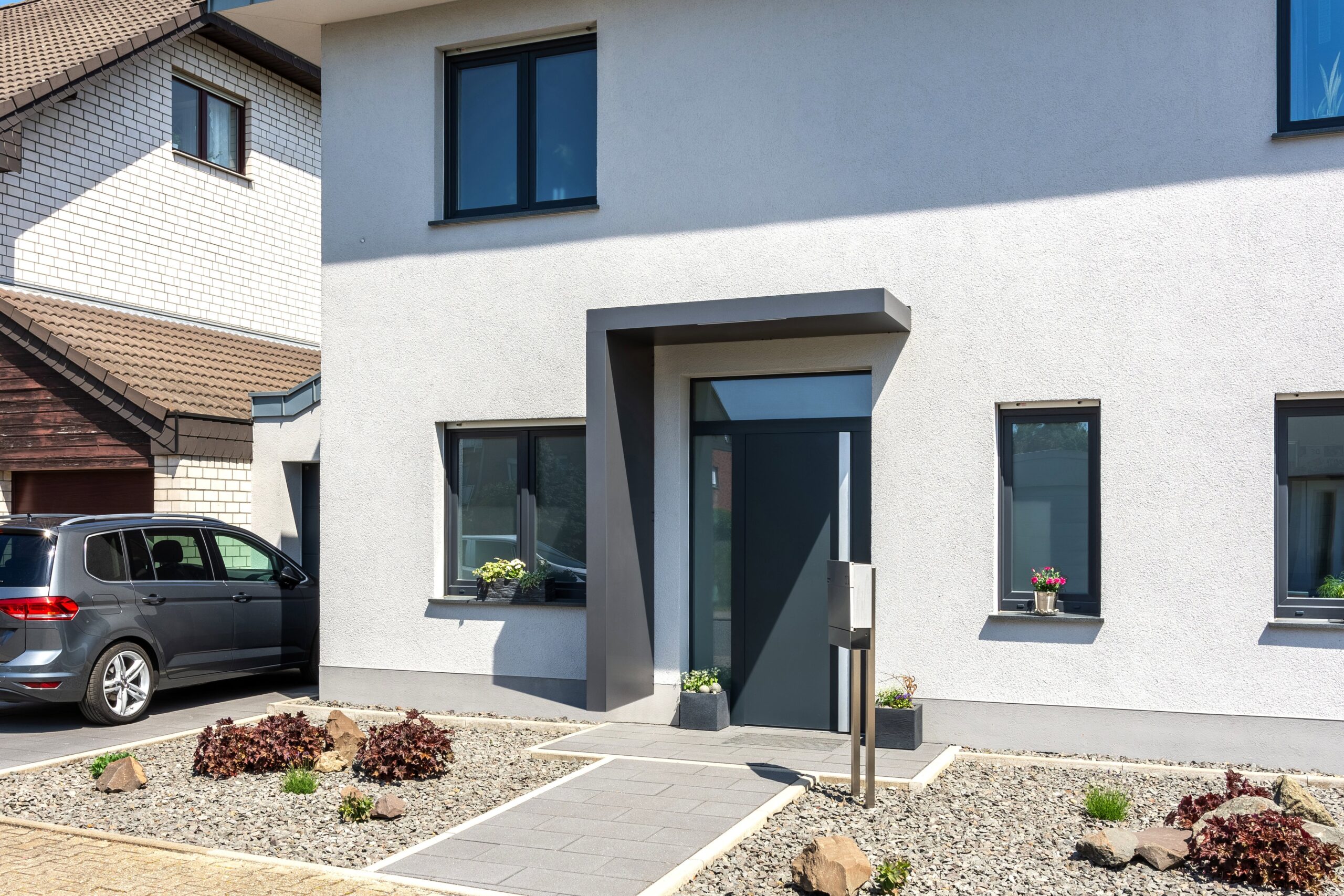 Als optionales Highlight lässt sich das Front Line mit einer modernen Seitenblende ergänzen – wahlweise mit integriertem Briefkastensystem, mit oder ohne Klingel sowie auf Wunsch auch mit Audio- oder Videofunktion. Zusätzlich sind Varianten mit eleganten Pfosten oder einer Kombination aus Pfosten und Seitenteil verfügbar.